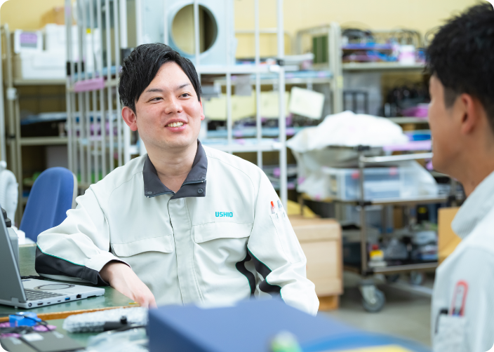 前職は放射線測定装置のメーカーで、電気設計を3年、システム設計を7年経験しました。転職時は、電気設計の経験を活かしながら次のステップに進みたいと考えて、技術設計コンサルディングを軸に検討。そんな時に転職サイトでウシオ電機からメッセージをもらい、話を聞いてみることにしました。マネージャー能力を高く評価されたことと、給与や勤務内容のマッチングが決め手になりました。